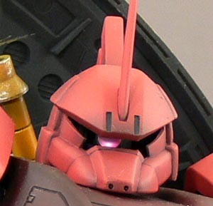 今回は先に書きましたとおり、量産型の成型色の上に直に塗装してしまいました。ほんとはシャアピンクといえばもう少し浅い色なんですが… それでシャドウとハゲを後付けしています。
