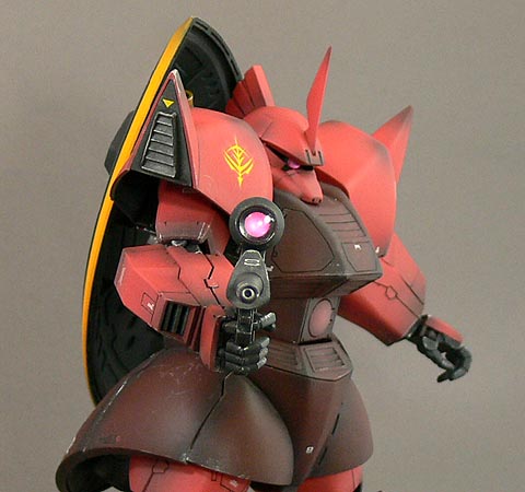 頭と肩はシャア用ですので、下地に量産型の成型色に近い色を作って塗り、色味を合わせてあります。